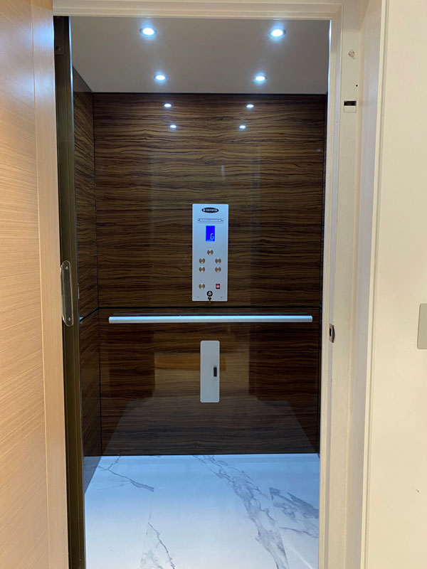 This hydraulic home elevator has an ultimate smooth and quiet ride which only requires a 92” ceiling height at the top landing. The compact, high efficiency pump takes up minimal space and only requires a small machine room. The lifting capacity can be up to 1400 lbs where code permits.