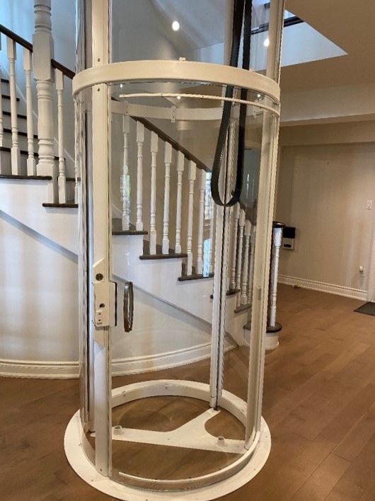 The largest air-driven residential elevator model available with a lifting capacity of 525lbs, the Vision 550 is the perfect choice for those in need of a wheelchair accessibility lift without the hassle of a large construction project. The Vision 550 has a self-supporting structure, no pit and no machine room required. With its quick installation, innovative design, and minimal pre-construction requirements this home elevator is an optimal choice to provide handicap accessibility in your home.